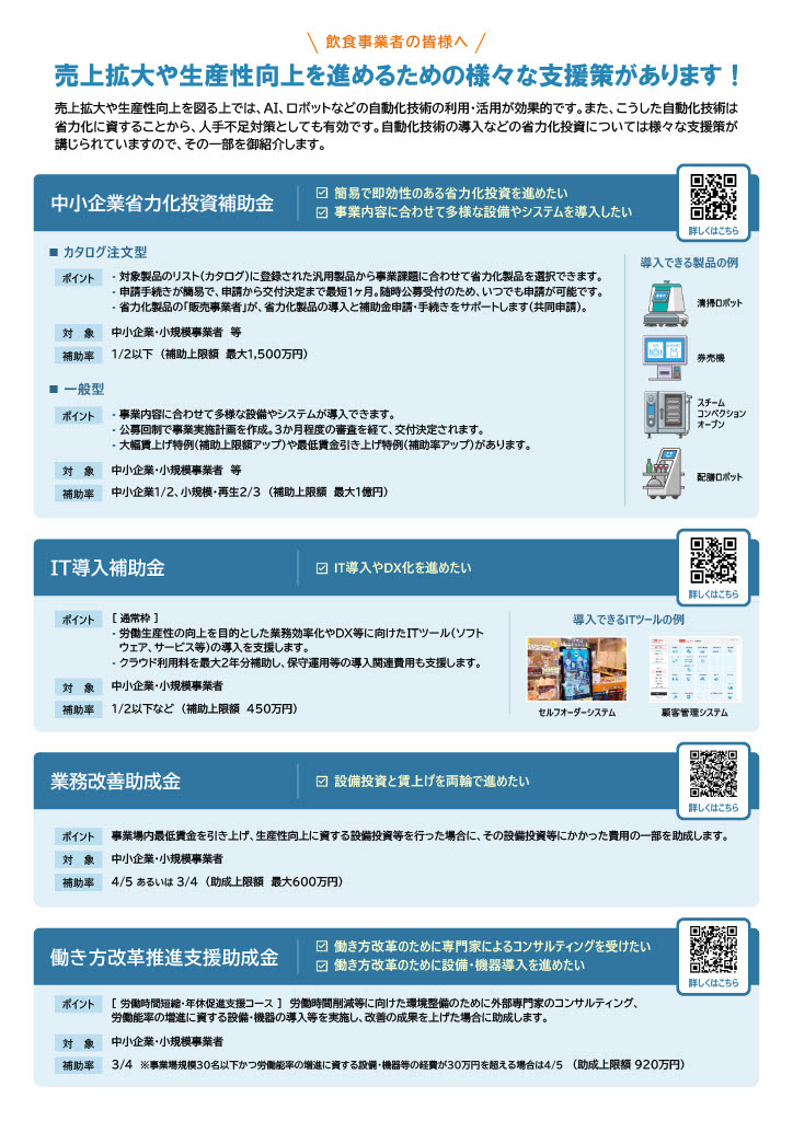 飲食事業者向け省力化投資支援策のご案内